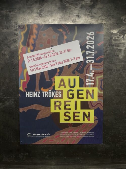 Ausstellung 17. April 2026 – 31. Juli 2026 — Camaro HausHEINZ TRÖKES – AUGENREISENVom 17. April bis 31. Juli 2026 zeigt die Alexander und Renata Camaro Stiftung im Camaro Haus die Ausstellung Heinz Trökes – Augenreisen. Als Künstler, Netzwerker und Mitbegründer der legendären Galerie Gerd Rosen schuf Heinz Trökes (1913-1997) 1945 einen Ort in Berlin, an dem die Avantgarde wieder sichtbar wurde und ein neuer geistiger Aufbruch begann. Seine Stimme war in den Debatten der Nachkriegszeit ebenso unverzichtbar wie seine Bilder, die den Hunger nach Freiheit und Weltoffenheit spiegeln. Im Zentrum seines Lebens und Schaffens stand die Erkundung der Welt. Für Trökes war das Reisen kein bloßer Ortswechsel, sondern ein Motor der Erneuerung. Eindrücke, Landschaften, Begegnungen – all dies verwandelte sich in seinem Werk zu farbintensiven, poetischen Bildwelten, die den Mittelpunkt der Ausstellung bilden. Dass sich die Alexander und Renata Camaro Stiftung Trökes widmet, hat auch mit einer frühen Begegnung zu tun, die beide Künstler verbindet. 1946 traf Trökes in der Nähe von Quedlinburg auf Alexander Camaro (1901–1992), erkannte die Nähe ihrer künstlerischen Haltung und verhalf ihm noch im selben Jahr zu seiner ersten Einzelausstellung in der Galerie Gerd Rosen. Daraus entstand eine lebenslange Verbundenheit. Die Ausstellung lädt dazu ein, Trökes als Reisenden, Impulsgeber und visionären Künstler neu zu entdecken – und die Welt durch seine Augen zu sehen: offen, neugierig, voller Bewegung. Eintritt freiEröffnung: Donnerstag, 16.04.2026, 18.00 UhrCamaro HausPotsdamer Str. 98 A10785 Berlin+49 (0)30. 263 929 75MehrTeilenTermin speichern