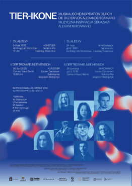 Sie luden die Komponistinnen Aleksandra Bilińska, Wojciech Błażejczyk und Lucien Danzeisen ein, Neues zu komponieren, das sich mit dem Schaffen Camaros auseinandersetzt. Das Resultat: spannende Werke für Schlagzeug, die Camaros Kunst zum Klingen bringen. Die neuen Kompositionen wurden bereits in Warschau präsentiert und nun in Berlin vorgestellt. Ein abwechslungsreiches Programm erwartet interessierte Besucher.